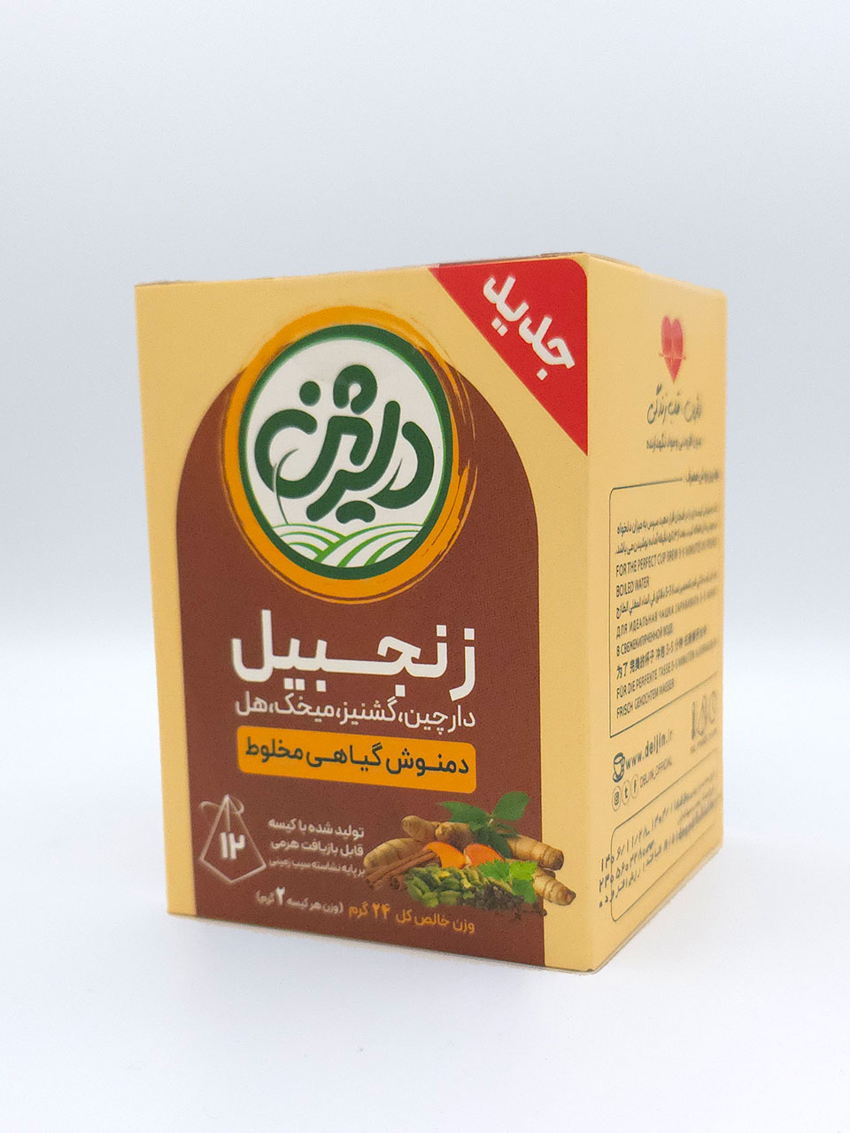 دم نوش زنجبیل با دارچین – گشنیز – میخک – هل دلژین، دارای خاصیت آنتی اکسیدانی بوده و در تسکین درد و بهبود التهاب بسیار موثر می باشد. زنجبیل همچنین در بهبود علائم بیماری هایی نظیر سرماخوردگی و آسم مفید بوده و به تقویت سیستم گوارشی و اعصاب نیز کمک می کند. زنجبیل دارای طبعی گرم می باشد و اضافه شدن دارچین، گشنیز، میخک و هل به این دمنوش، خاصیت تولید گرمای آن را افزایش می دهد. مصرف این دمنوش موجب سلامتی، نشاط و انرژی در بدن می شود. برای مشاهده و خرید دمنوش های گیاهی دلژین کلیک کنید.